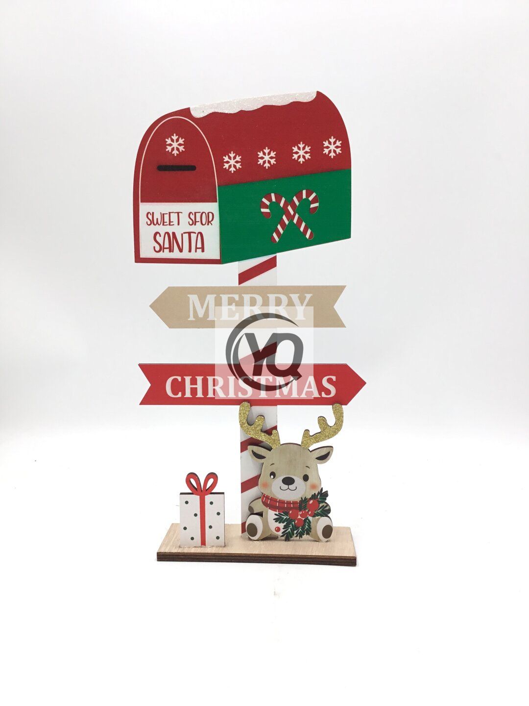 25H001 Tabletop wooden Christmas decoration with snowman Santa fawn for Christmas decoration